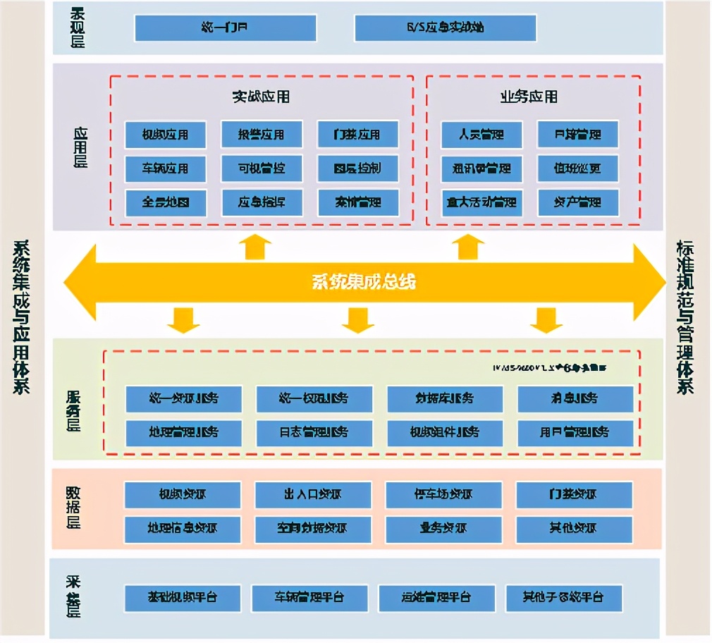 车辆管理方案从逻辑上可分为图像分析和物联网技术、传输网络、出入口控制系统、校园卡口系统、校园违停系统、升降柱系统、车辆管理平台等几个部分,如下图所示。