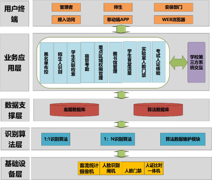 学校需从顶层应用出发,构建应用于全校的人脸识别管理平台,统一进行人脸库、识别结果和设备的管理,便于数据的收集、分析和应用;
