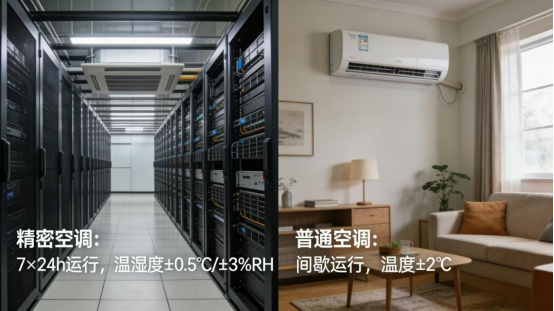 弱电猫 机房工程里,精密空调和普通空调的核心区别是什么?机房温湿度的标准范围是多少?